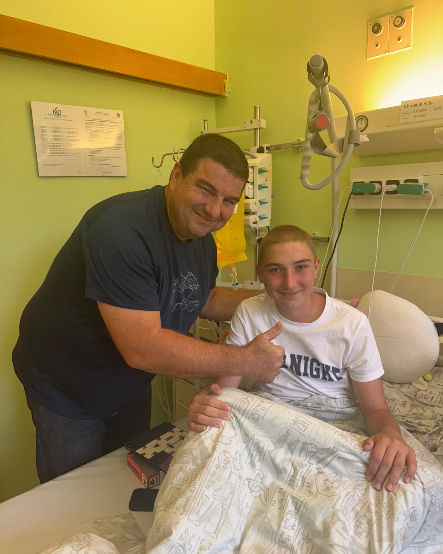 Měli jsme rovněž možnost setkat se s Filipem a jeho tatínkem přímo na lůžkové části oddělení dětské hematologie a hematoonkologie FN Ostrava, kde Filip podstupuje další část své léčby. Předali jsme nejen podepsanou smlouvu a vybrané finance, ale také mnoho pozdravů a povzbuzení od vás všech.