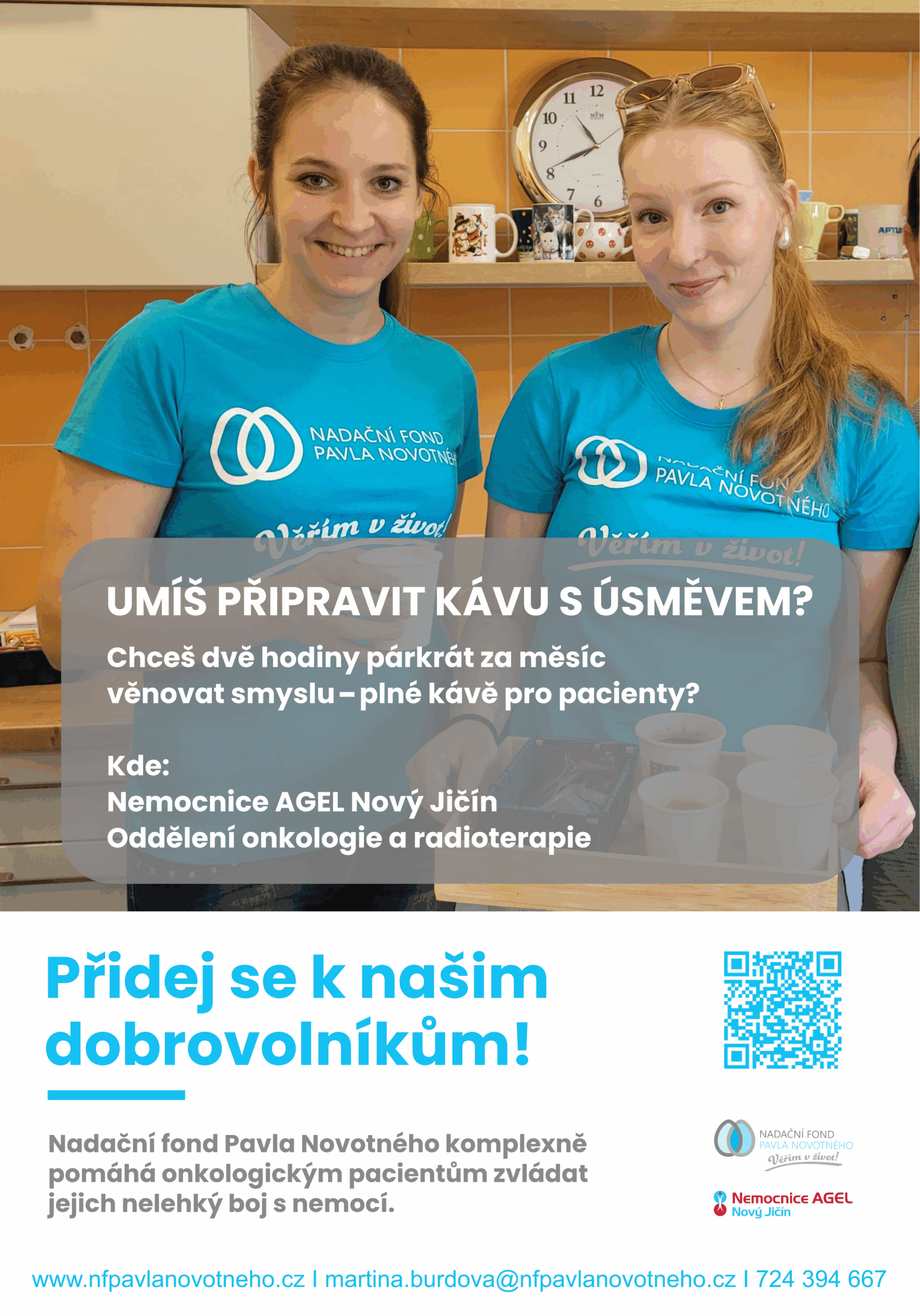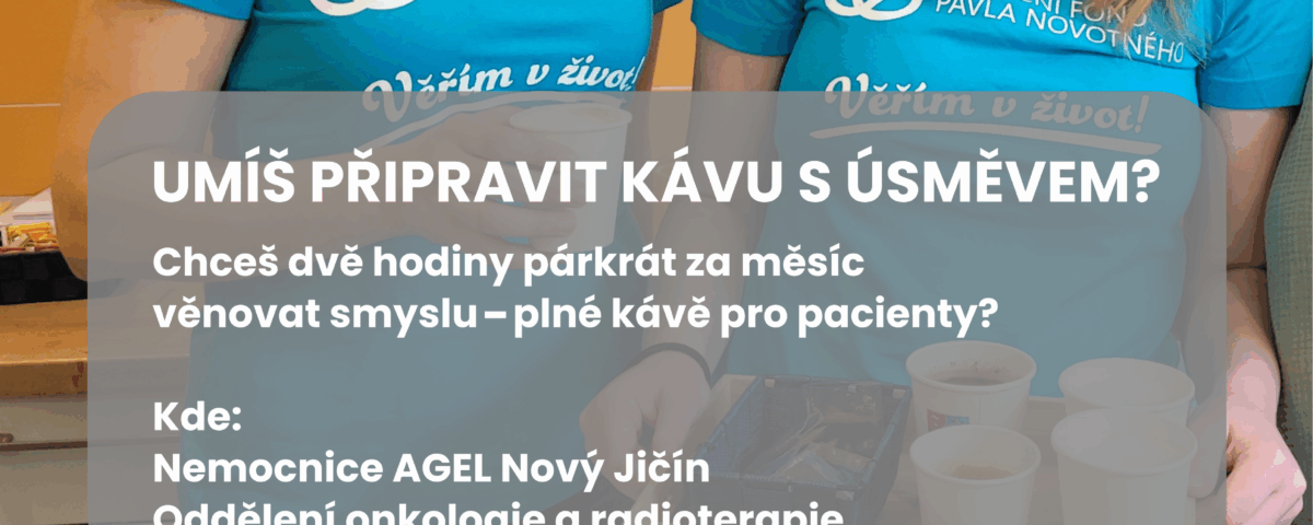 Pro naši Kavárnu života v Novém Jičíně hledáme nové dobrovolníky. Stačí pár hodin Vašeho času měsíčně a můžete onkologickým pacientům neuvěřitelně zpříjemnit jejich náročný den.
